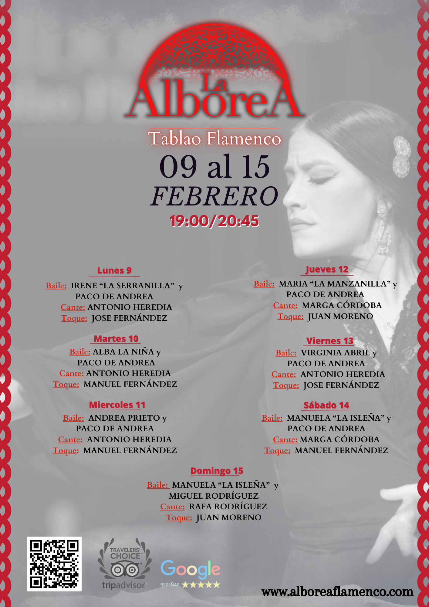 Os mostramos algunas de nuestras artistas para la agenda flamenca e nuestro tablao en el mes de Febrero de 2026.